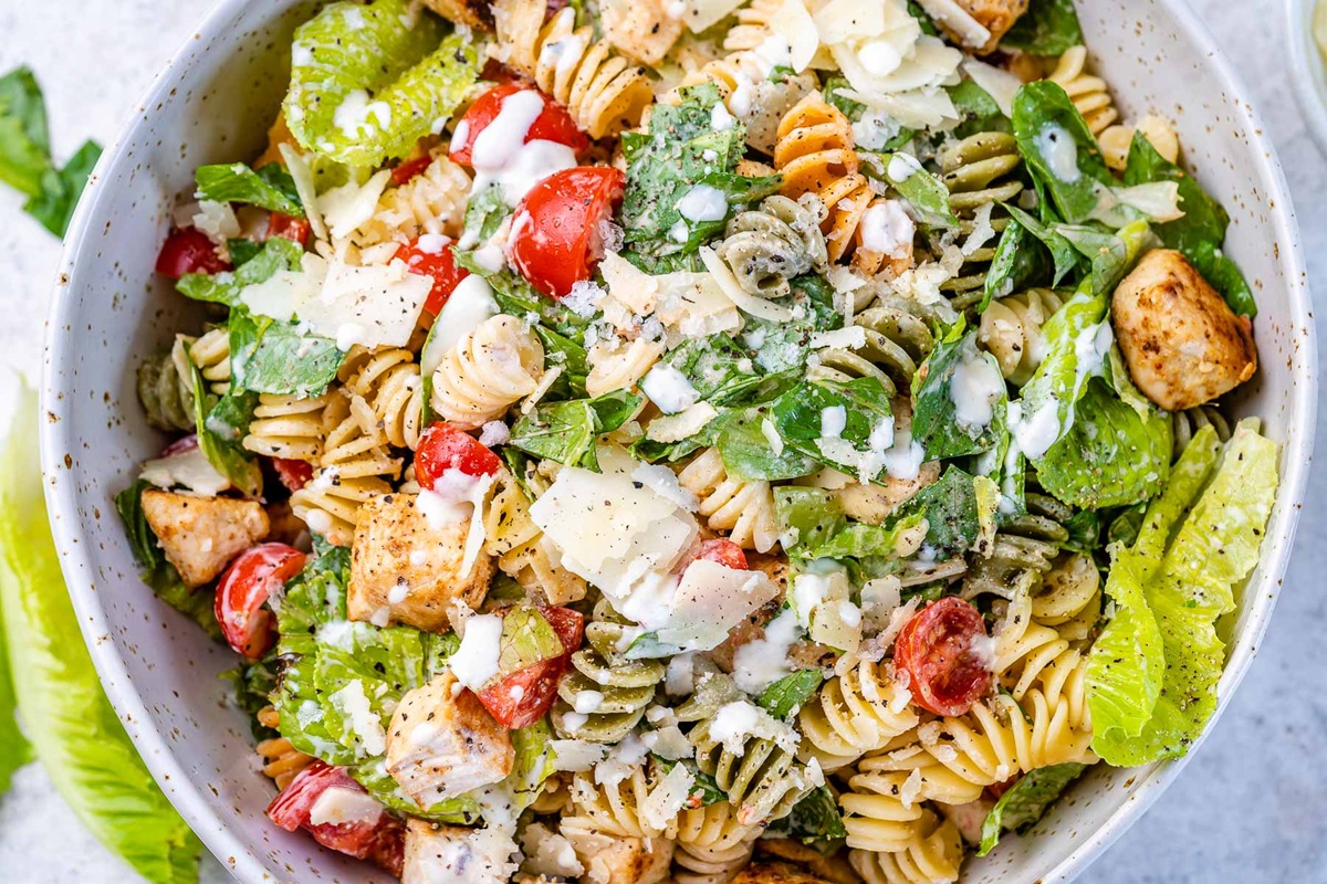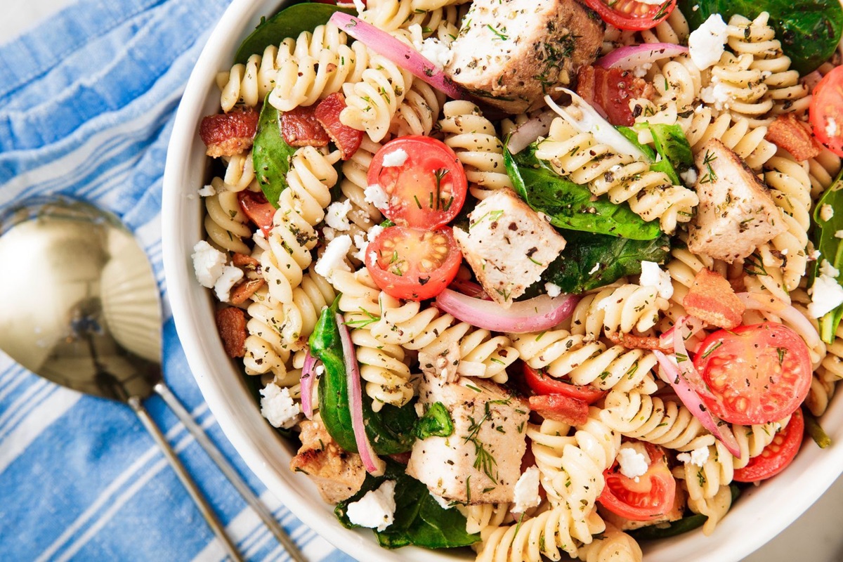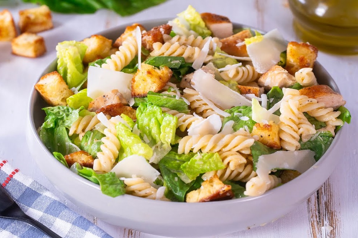 Quando souber que não terá tempo para cozinhar, prepare no dia anterior uma salada saciante para um almoço rápido. Assim, mesmo num dia agitado, em vez de recorrer a snacks comprados na loja, poderá comer uma refeição saciante e nutritiva. A base do prato é o macarrão, ao qual basta adicionar peito de frango e vegetais coloridos. Prometemos que será delicioso e saudável. A salada de macarrão com frango é um prato cheio de frescura, cores e sabores únicos. O cremoso abacate combina muito bem com o sabor intenso dos tomates secos, e o crocante e doce milho completa o prato. Esta salada inspirada nos sabores da cozinha mediterrânica é perfeita como um almoço leve para o trabalho, um jantar saboroso ou uma refeição à noite. Além disso, este prato é uma verdadeira bomba de ingredientes saudáveis, com muita proteína, gorduras saudáveis, vitaminas e minerais. É delicioso tanto quente como frio.