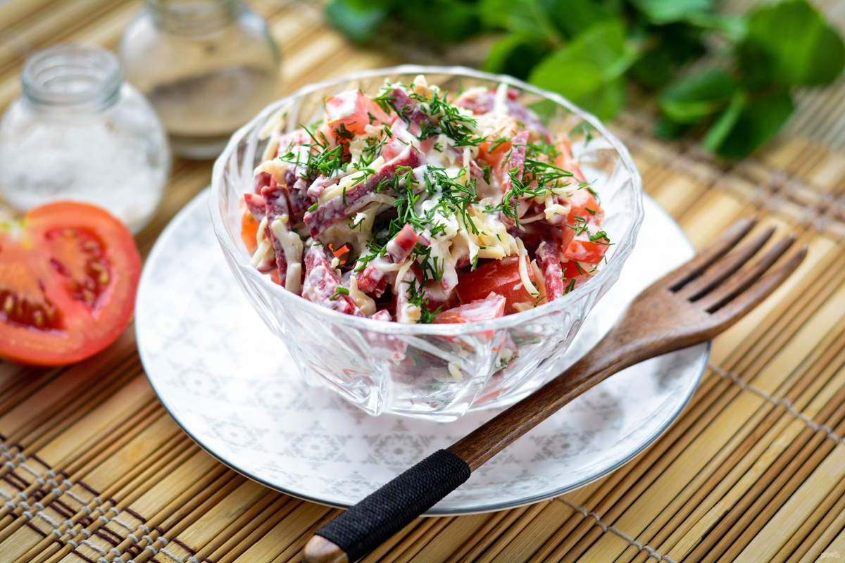 Certa vez, quando me cansei da clássica salada de legumes, decidi experimentar um pouco e foi assim que surgiu esta receita. A salada com salsicha é deliciosa e tão saciante que até o meu marido adora. Gostamos de comer no jantar e também levo para o almoço no trabalho.