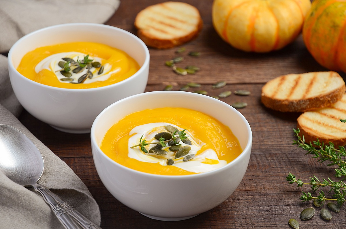 O creme de abóbora pode ficar guardado. Encontrei uma receita de sopa de outono que sacia e aquece por muito tempo