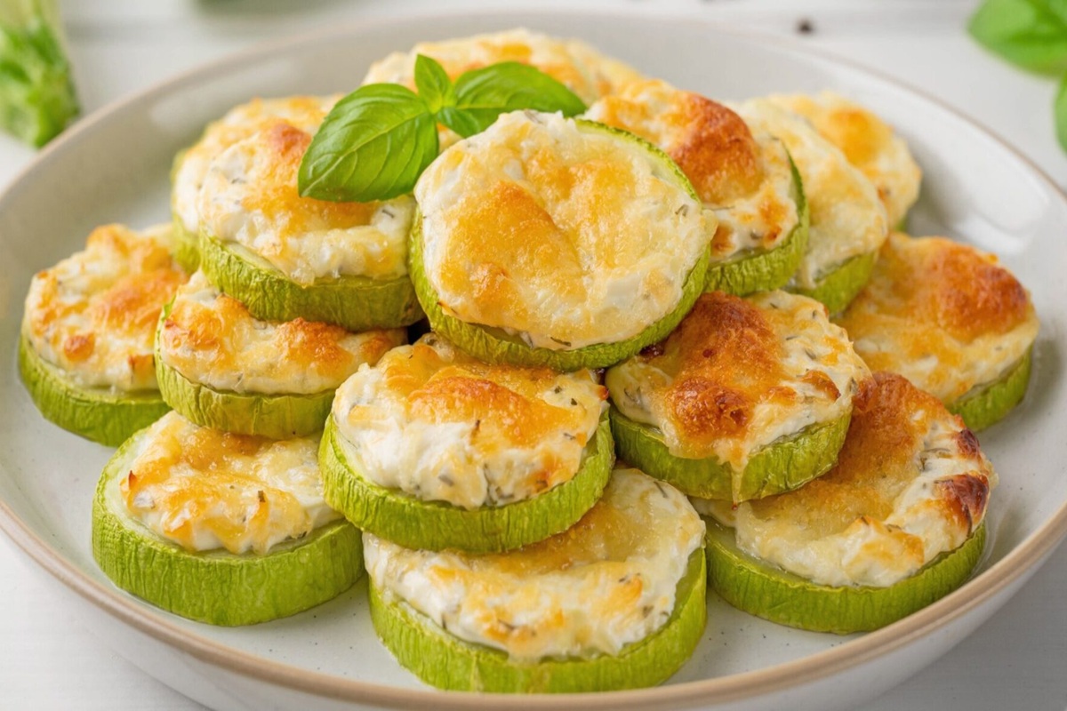Os petiscos de abobrinha assada fazem sucesso em todas as festas. São leves, mas ao mesmo tempo saciam e são cheios de sabor. A sua maior vantagem é a versatilidade, pois a abobrinha pode ser recheada com diversos recheios (desde queijo com ervas e tomates secos até hummus ou mozzarella com manjericão). Assim, todos encontrarão algo do seu agrado e você poderá ter 3 pratos em 1. Além disso, os canapés têm um aspeto impressionante, ainda mais se forem servidos numa bandeja elegante.