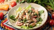 Transfira a massa para uma forma de bolo com 22 cm de diâmetro forrada com papel vegetal. Coloque a forma dentro de outra forma para assar e encha a forma externa com água morna.